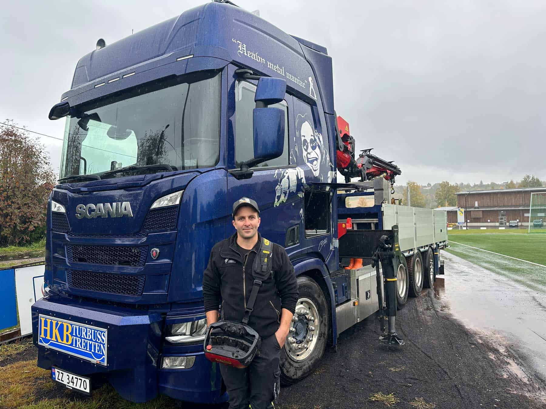 OPPDRAG: Tage Bjerkestuen, nå med egen kranbil. – Jeg tar gjerne på meg oppdrag, reklamerer han, i dag på dugnadsjobb for Biri IL.