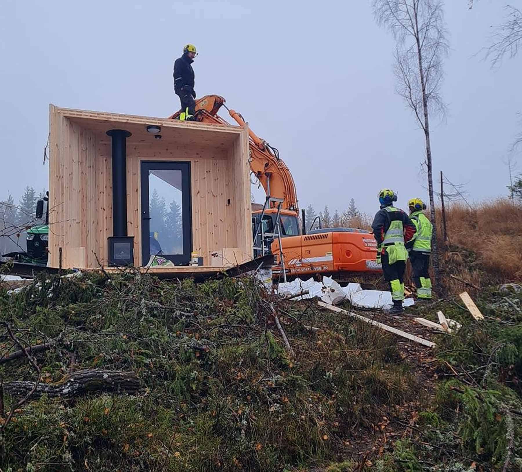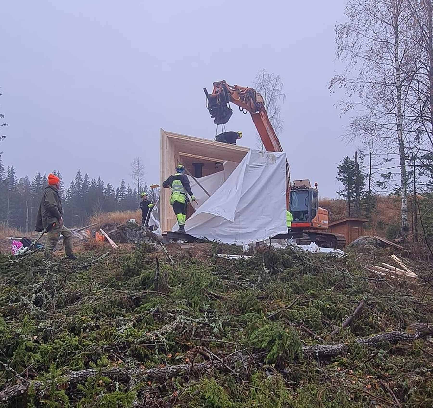 Hytta ble kjørt opp i seksjoner og montert onsdag denne uken. Det er Bruun Bygg i Vågå som har hatt produksjon og monteringen av hytta, de har levers ca. 30 slike hytter i innlandet dette året.