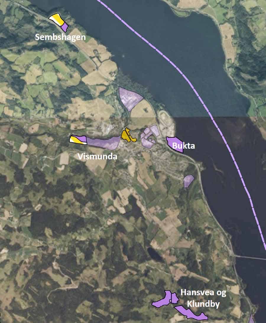 NÆRINGSOMRÅDER; Områdene i gult og lilla er avsatte næringsområder i Biri.