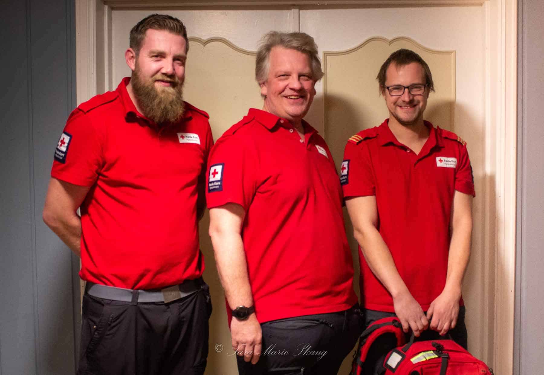 AKUTTVAKTER: Disse tre har akkurat gjennomført kurs som akuttvakter: Kim Olsen Evensen, Nils Frode Martila og Joakim Sørensen, som også er leder av hjelpekorpset.