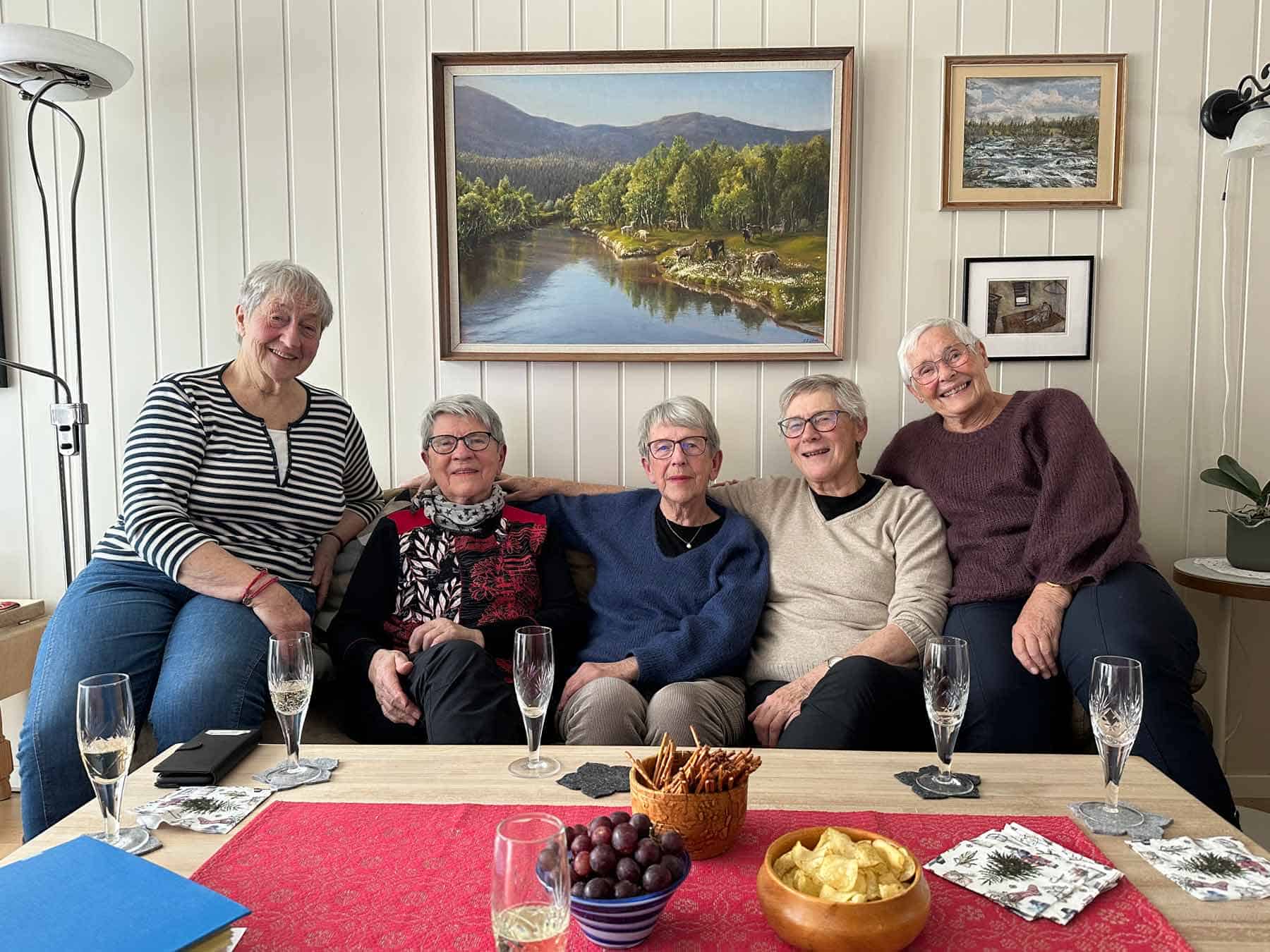 Det tviler vi ikke et sekund på, de fem livsglade kvinnene har holdt både julebord og grillfester med menn og familier. – En del fest, dans og moro har det vært, men ganske uskyldig det hele, sier de bestemt, – det sosiale og morsomme har vært viktig for oss. Det er nok derfor vi er i såpass godt hold alle sammen, ler Borkners og alle nikker bekreftende. – Men noen «swingers» har vi aldri vært, ler syklubben.