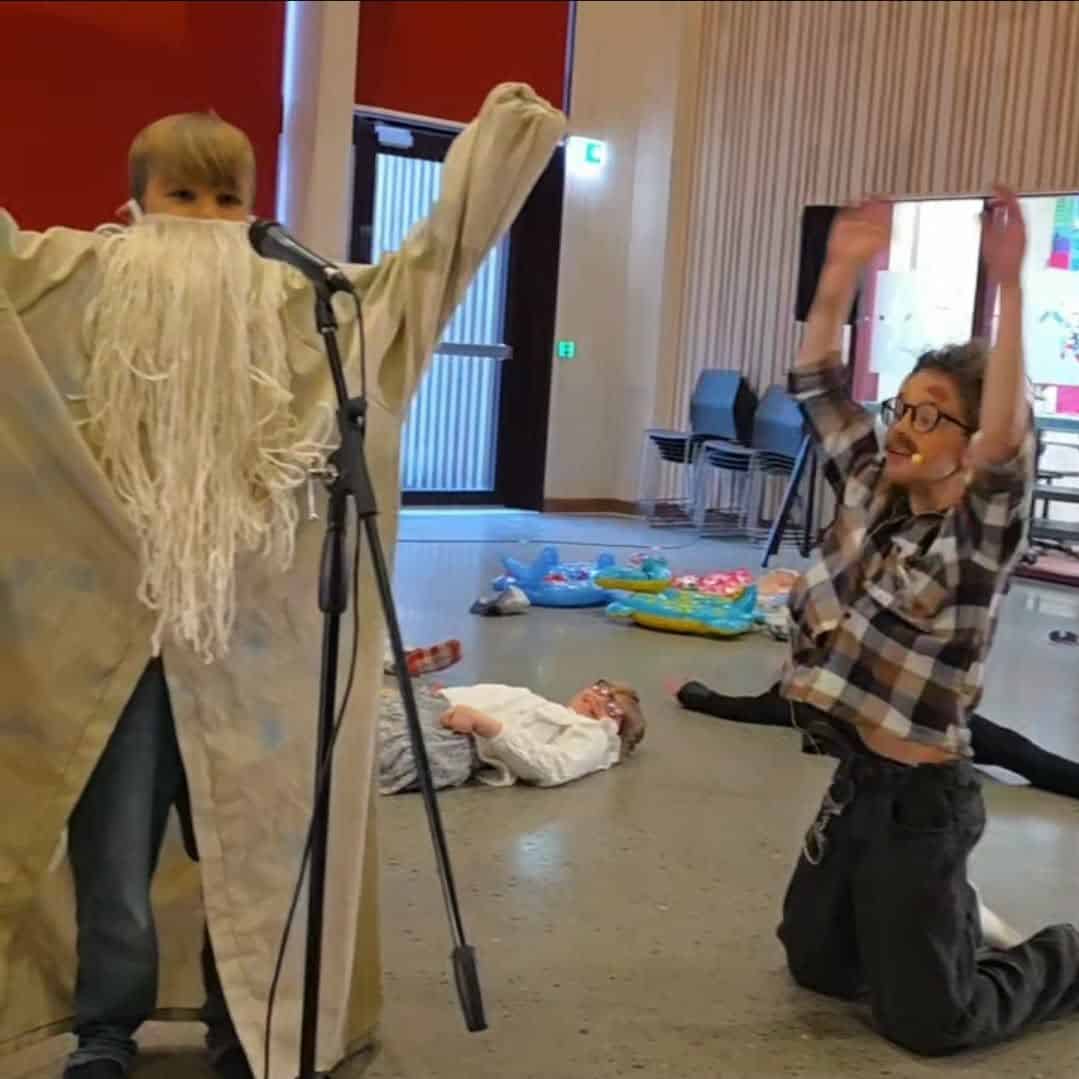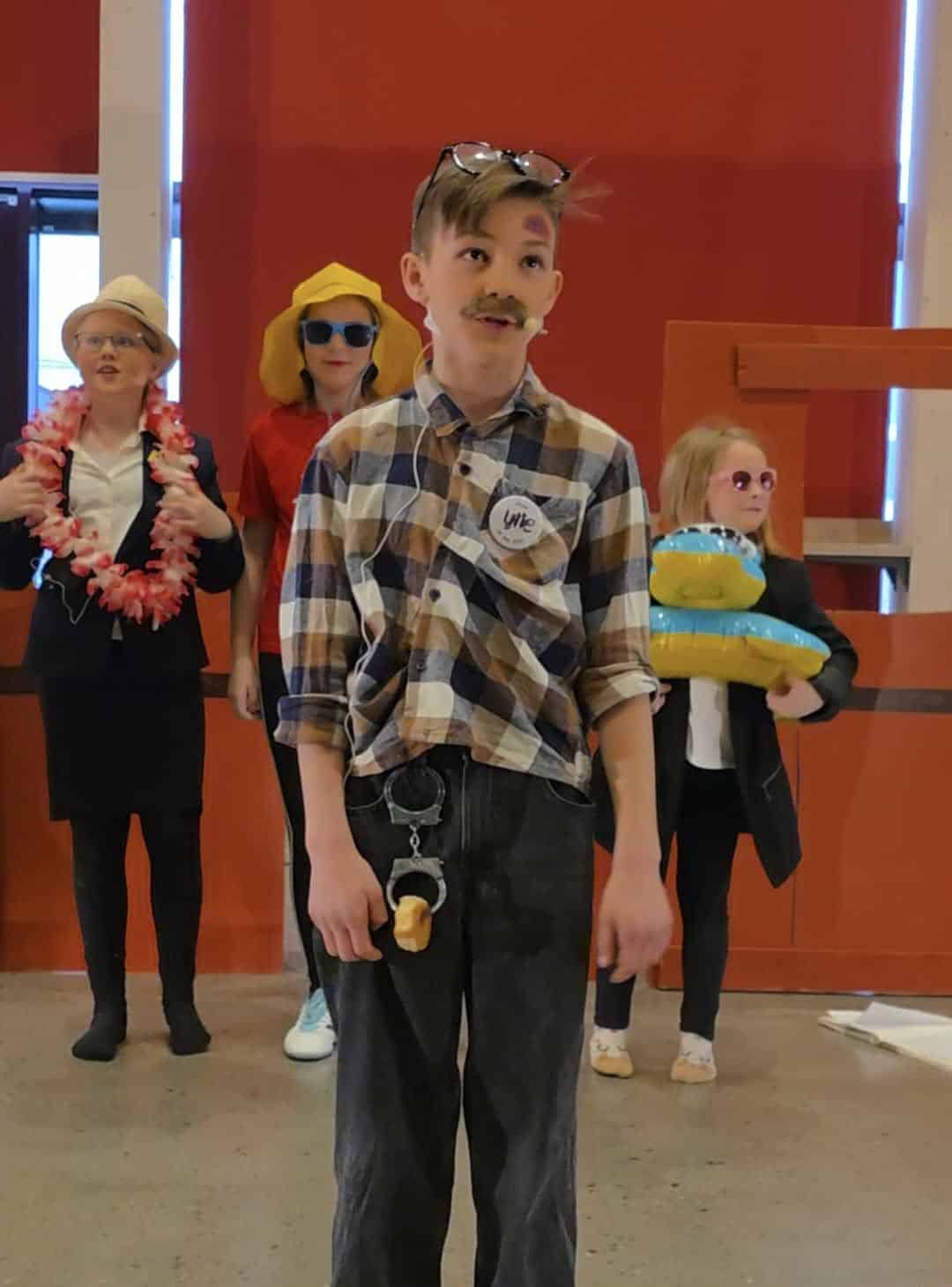 Latteren satt løst både på scenen og blant publikum denne søndagen. Instruktører var Heidi Skogsbakken og Ellen Rieb. – Vi vil rette en stor takk til alle som kom og så på, sier de. Stykket er skrevet ut fra innspill fra ungene og ispedd litt Monty Python-inspirer humor fra instruktørene side. Dette slo svært godt an blant publikum.